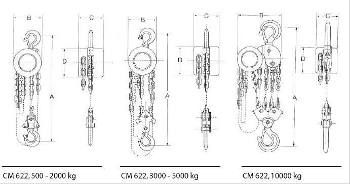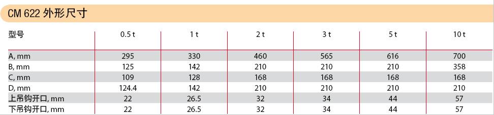 美國科美CM622型手拉環鏈葫蘆技術參數: